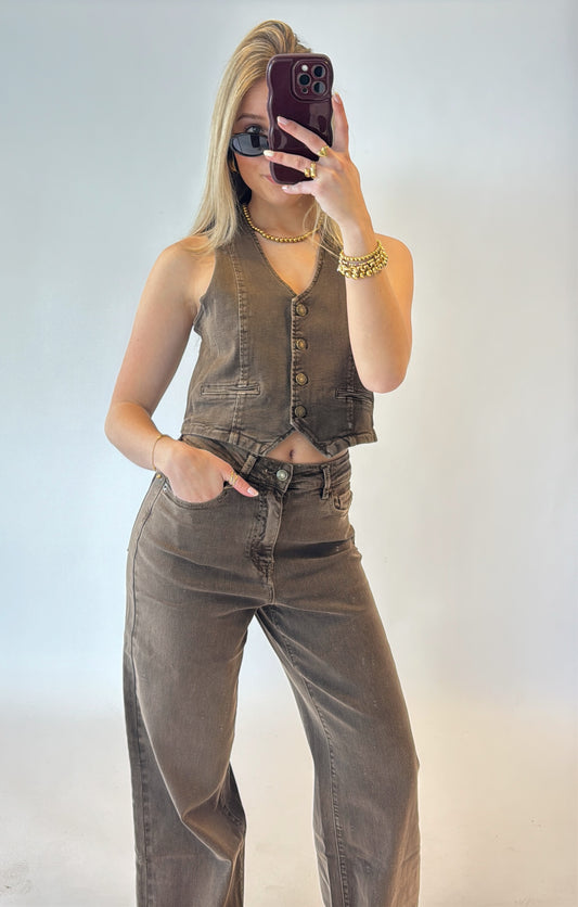 Ambika wide leg pantalon - bruin