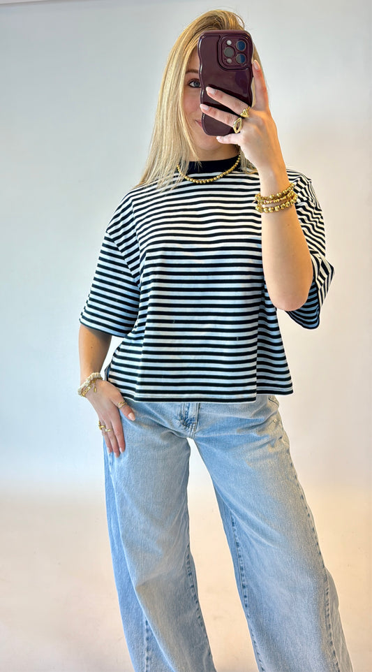 UitverkochtStriped shortsleeve top - blauw