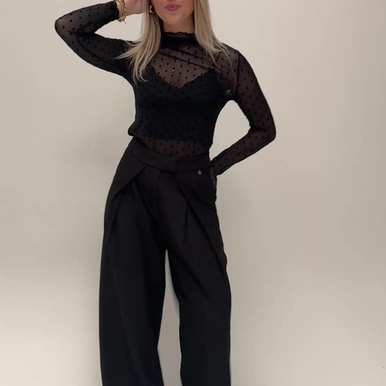 De pantalon die alles heeft! Deze chocoladebruine wideleg pantalon is de musthave voor een effortless trendy look! Met zijn hoge taille, diepe plooien en extra wijde pijpen geeft hij elke outfit een stijlvolle fit!