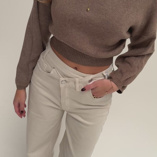 Wauw! Hoe mooi is onze nieuwe Queenheart jeans?! De crossover button maakt de jeans helemaal af! De jeans heeft een wide leg model.
