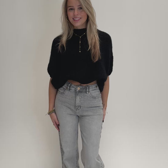 Deze heerlijk zacht gebreide trui met kwart mouw is de perfecte combinatie van comfort en stijl! We hebben deze in verschillende kleuren! Het is een losvallend model en kriebelt niet.