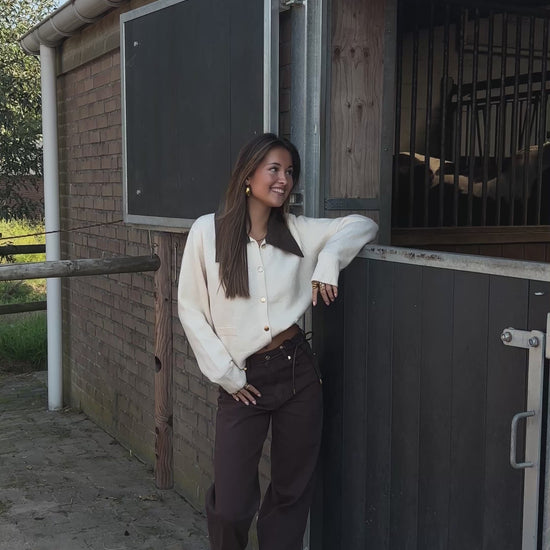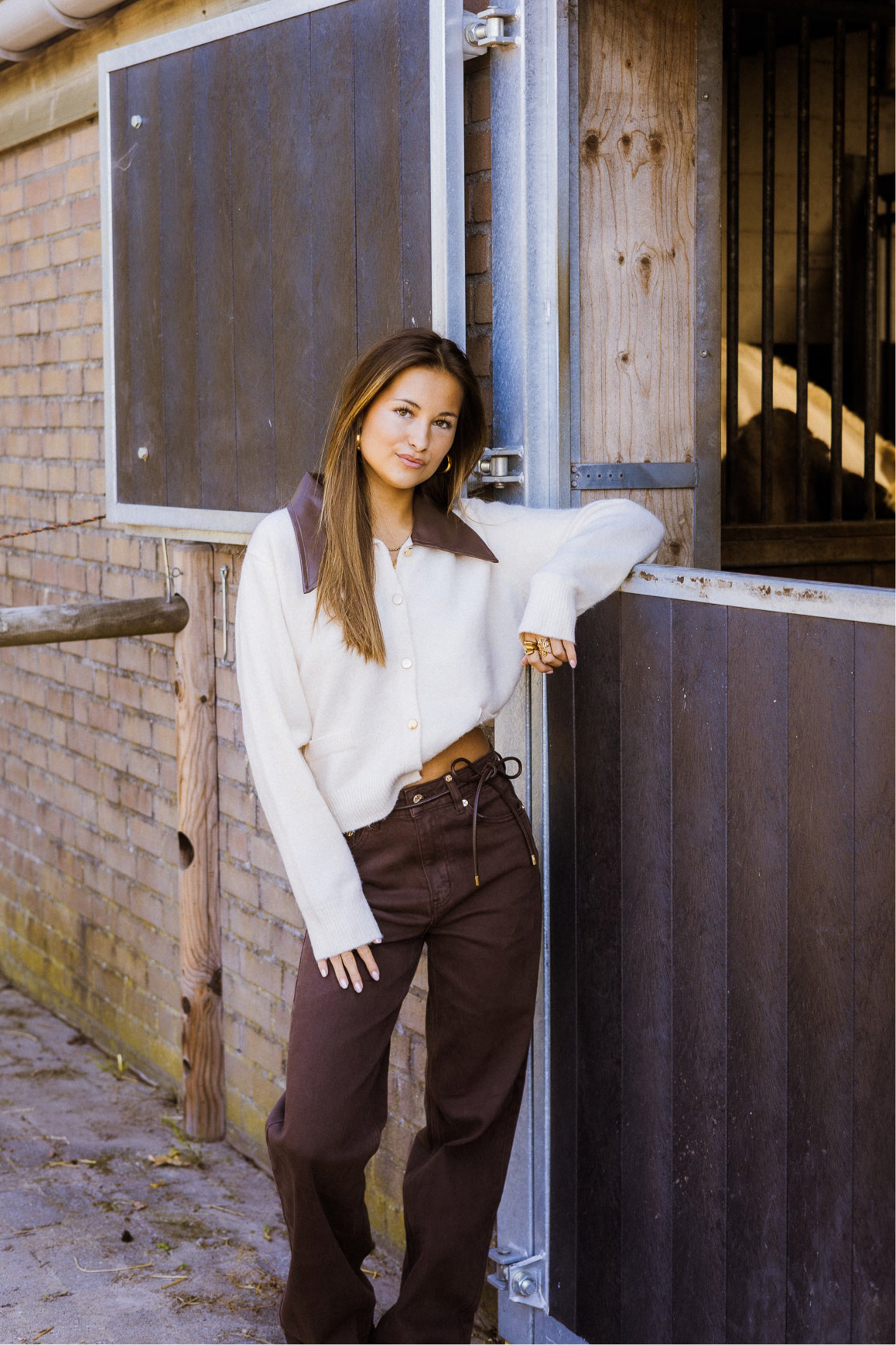 The perfect mix of comfort & style! Dit vestje is heerlijk te dragen en perfect voor dit najaar! De leren kraag geeft het vestje net een extra touch! Het is zacht materiaal en kriebelt niet!