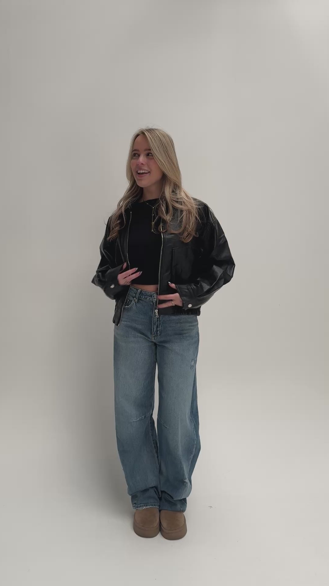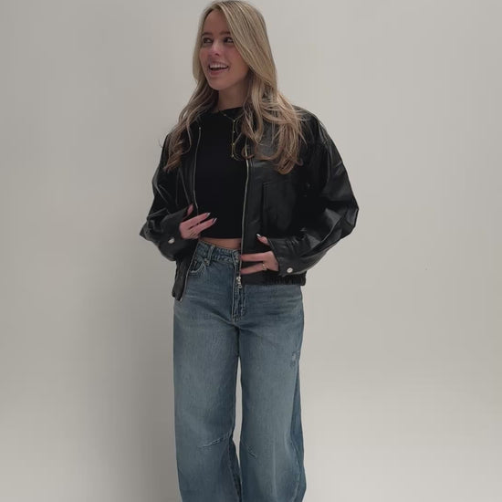 Hoe leuk is deze leatherlook jacket?! Het perfecte statement item! De jas heeft een lichte oversized fit.
