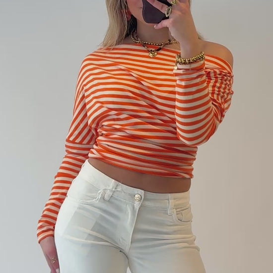 Geef je Koningsdag outfit een trendy twist met deze asymmetrische top! De top heeft een opvallend oneshoulder design met een speelse schuine hals. De top heeft een mooie aangesloten pasvorm. Perfecte top voor Koningsdasg!