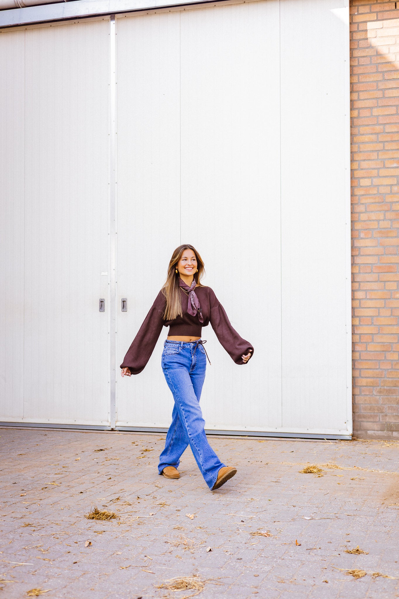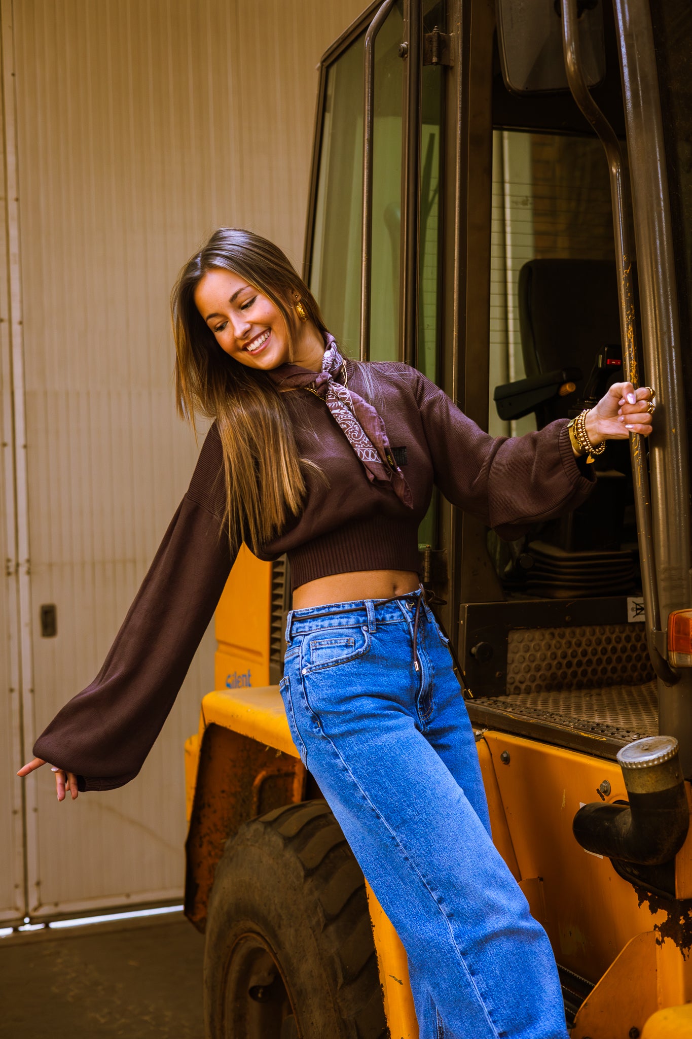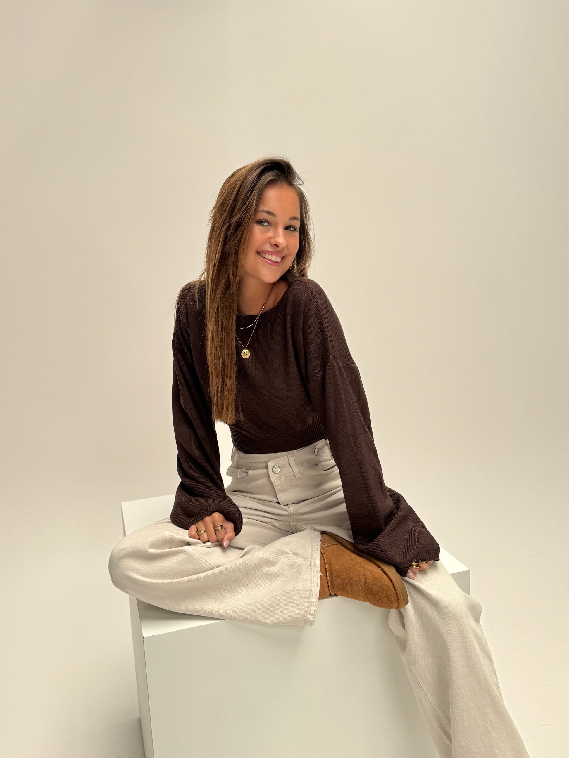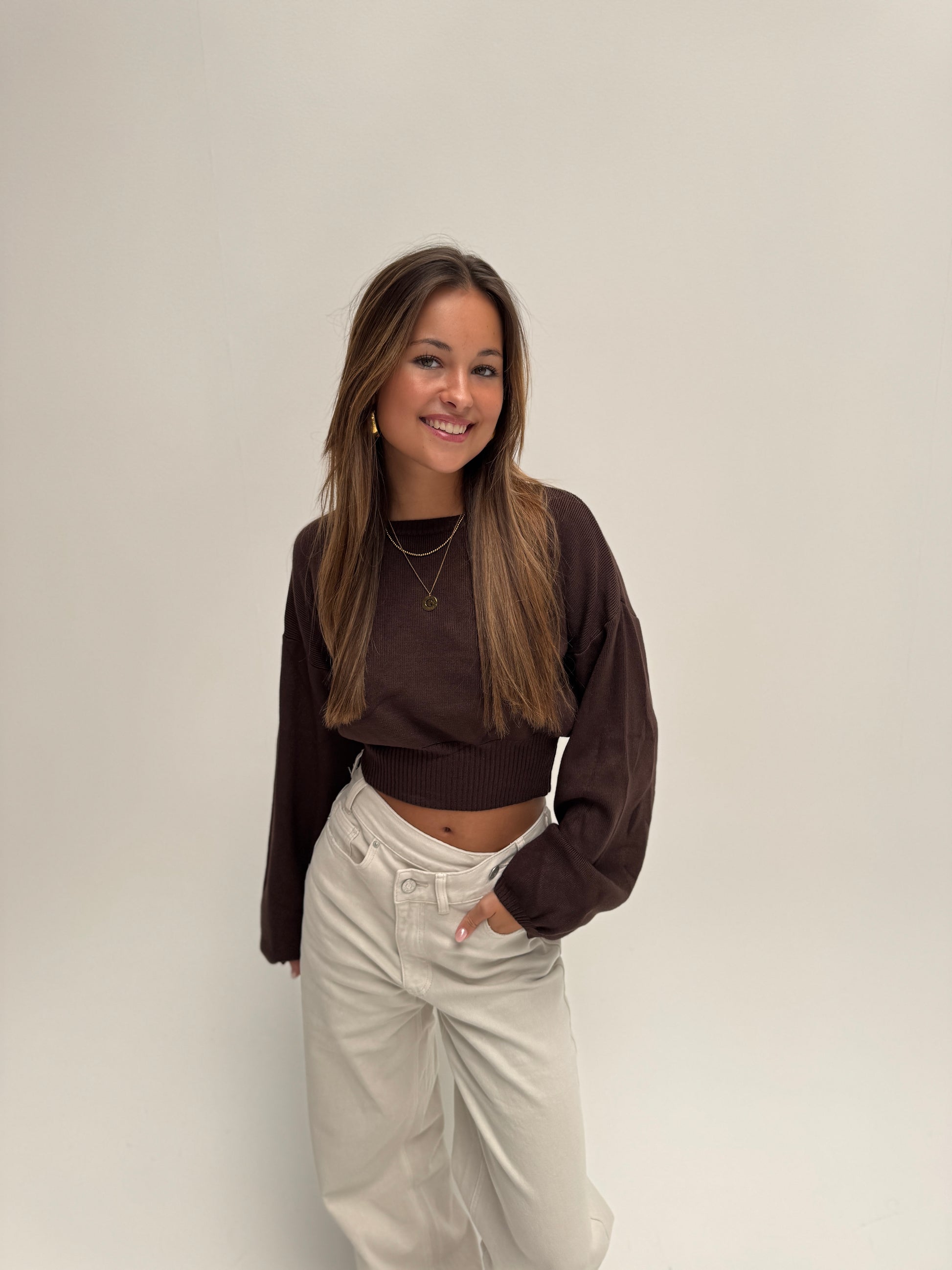 Deze cropped knit sweater combineert stijl en comfort in één! Door het zacht stofje is de trui heerlijk te dragen! De trui heeft wijde ballonmouwen die de trui een speelse touch geven!