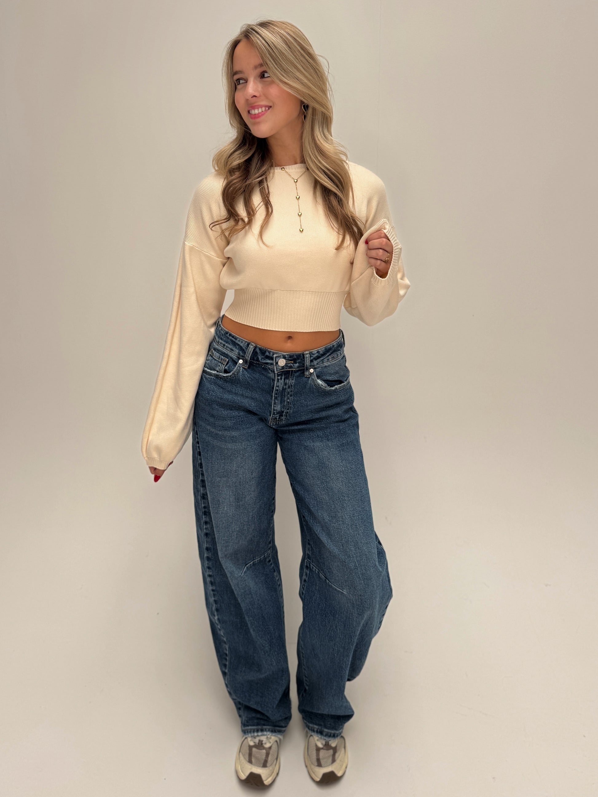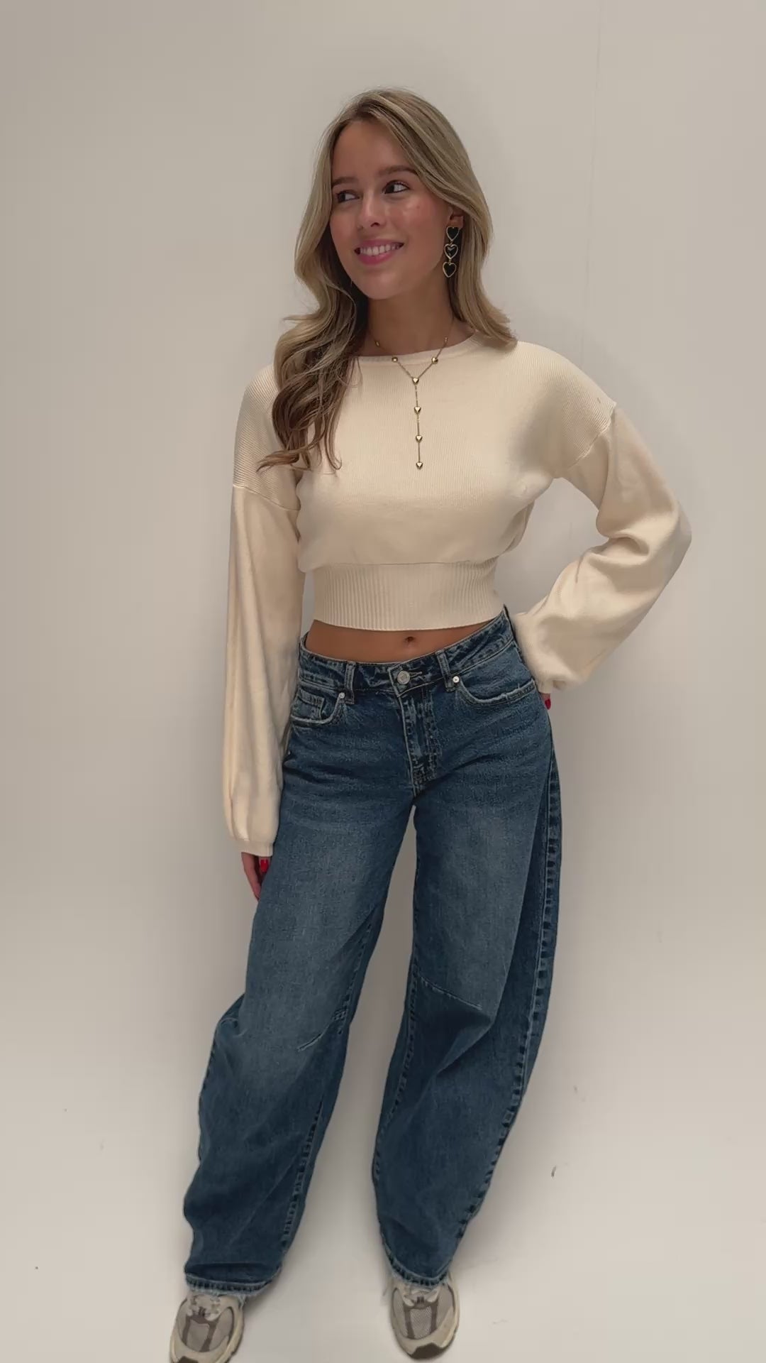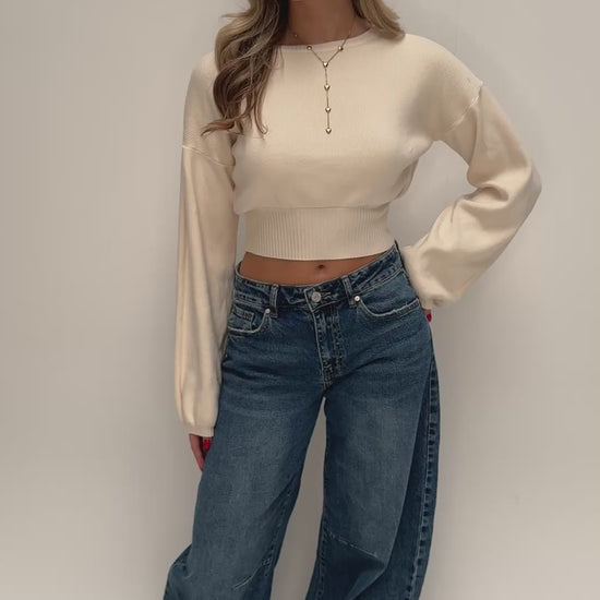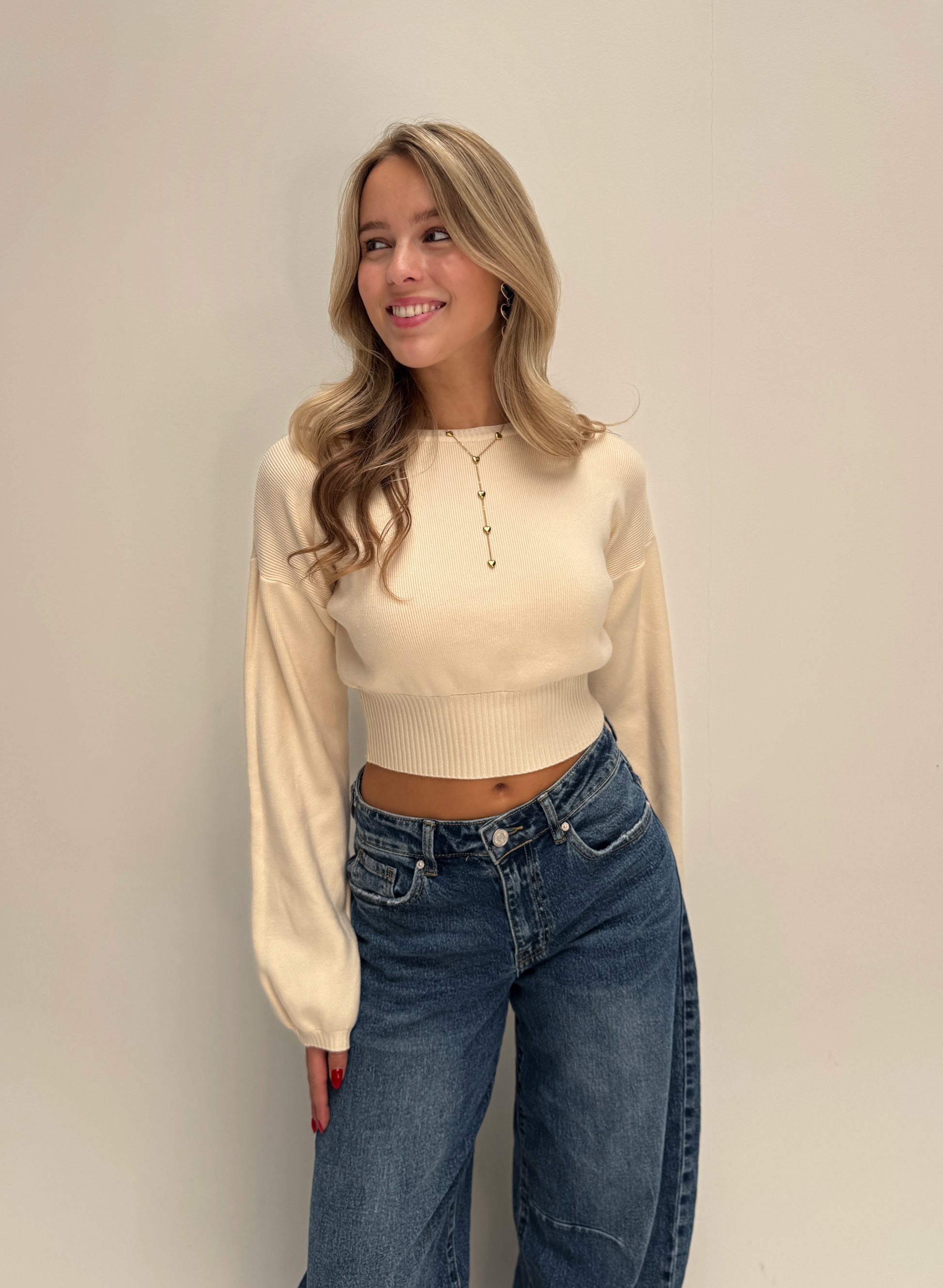 Deze cropped knit sweater combineert stijl en comfort in één! Door het zacht stofje is de trui heerlijk te dragen! De trui heeft wijde ballonmouwen die de trui een speelse touch geven!