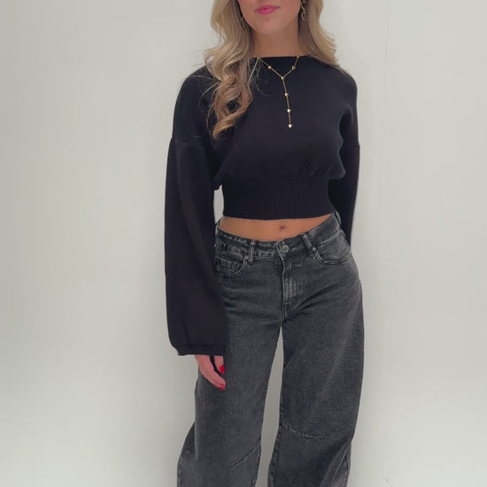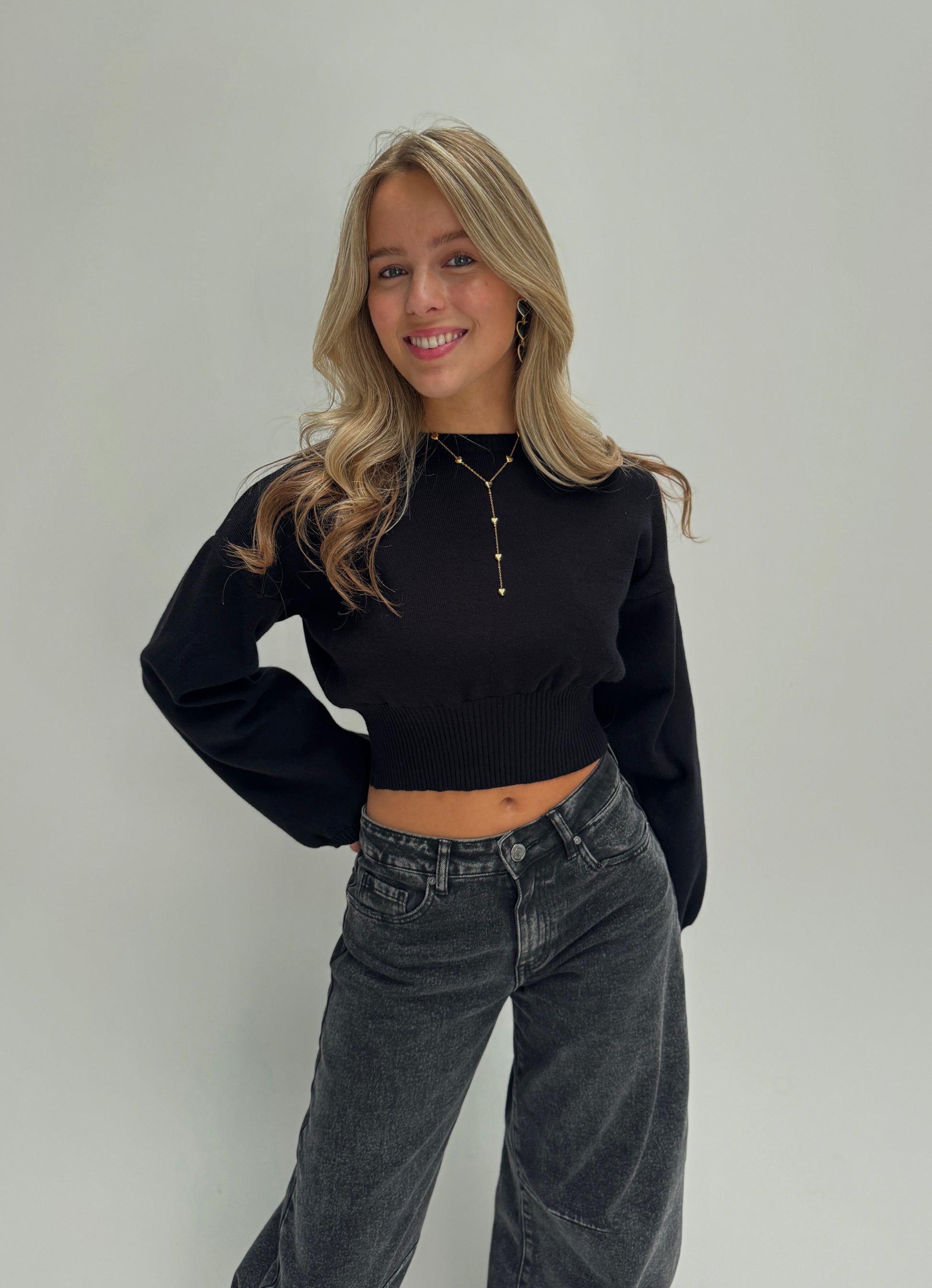 Deze cropped knit sweater combineert stijl en comfort in één! Door het zacht stofje is de trui heerlijk te dragen! De trui heeft wijde ballonmouwen die de trui een speelse touch geven!