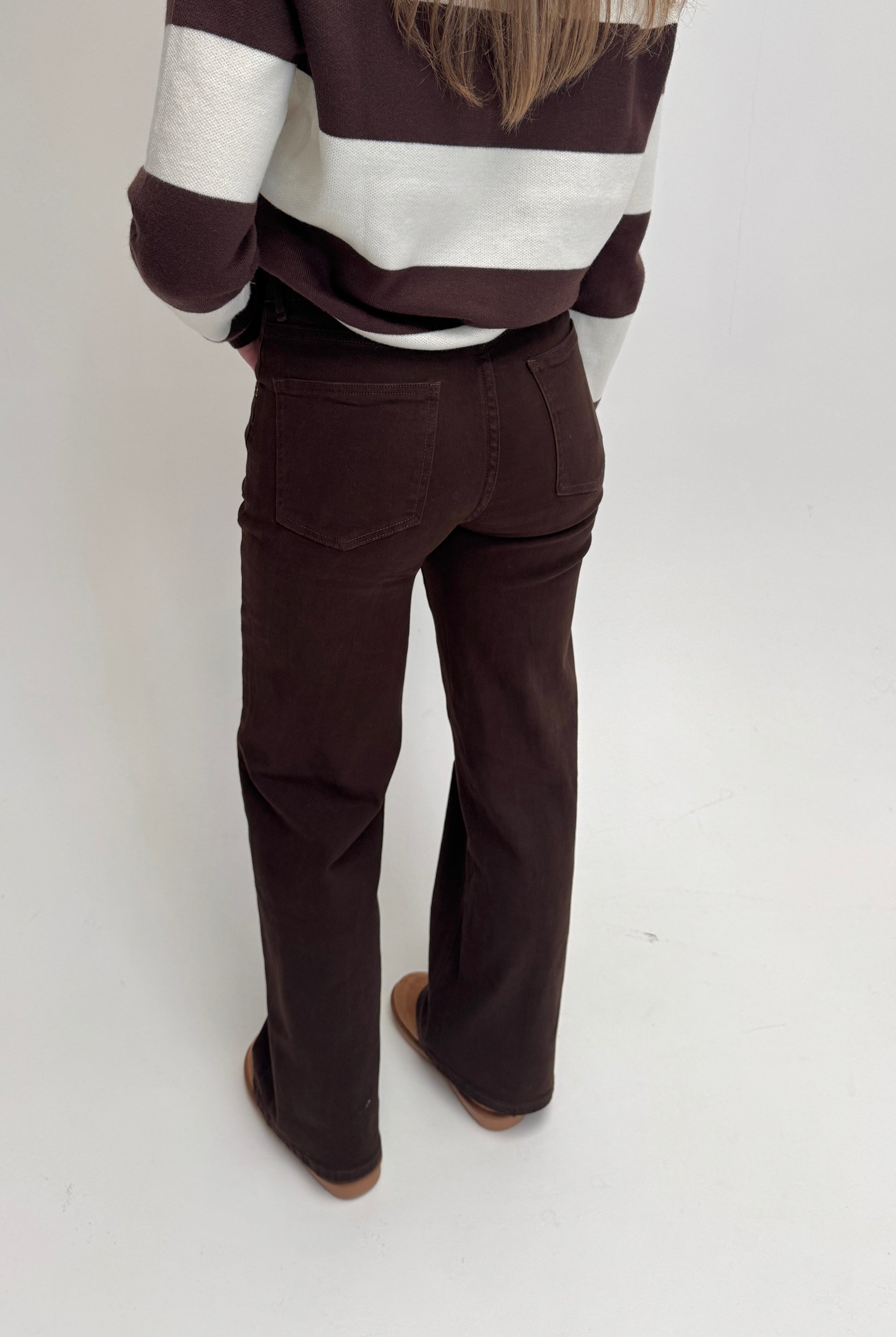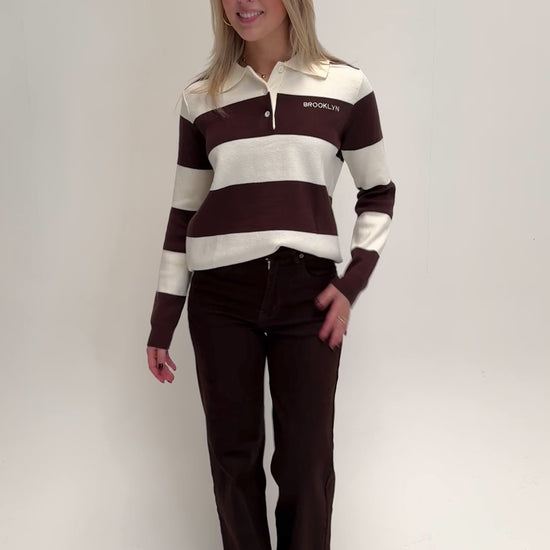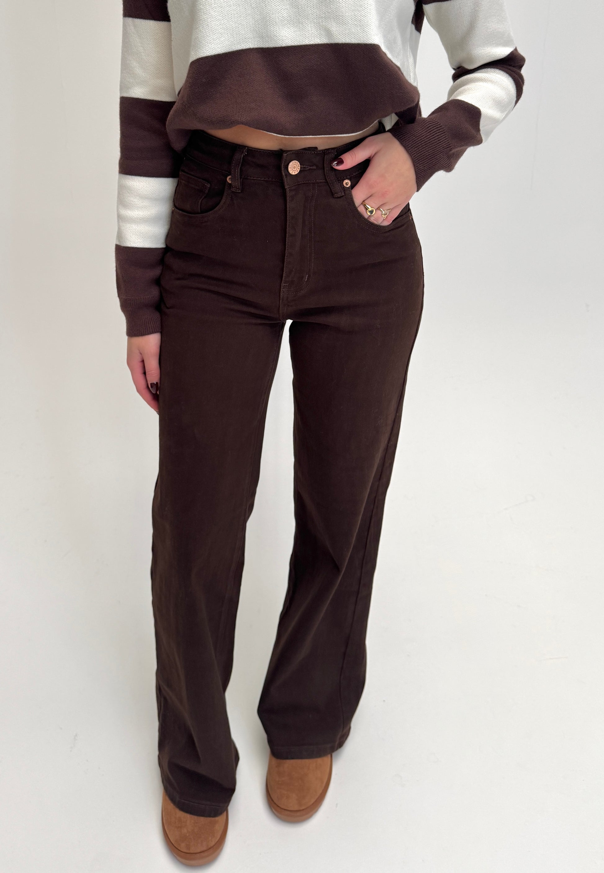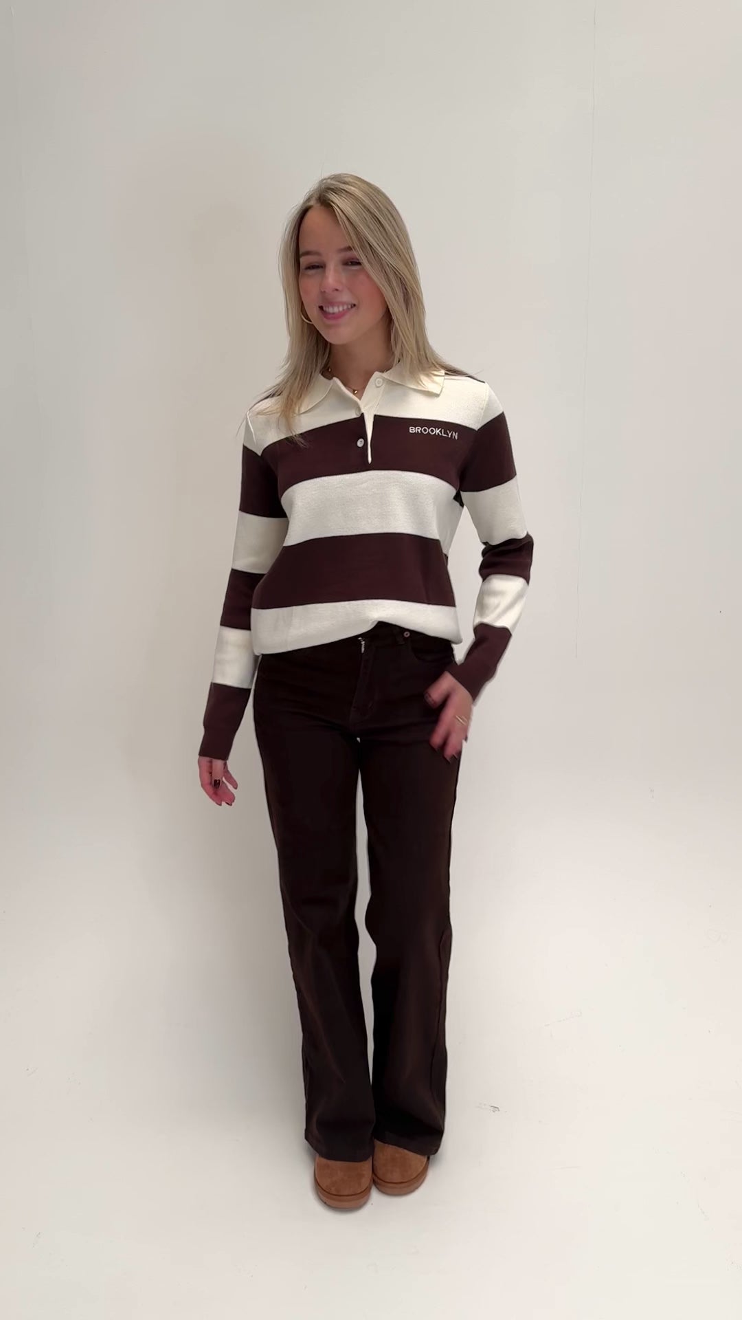 Maat 34 tm 42. Model op de foto draagt maat 36 en is 1.69m. Broek is ong te dragen tot een lengte van 1.72m.