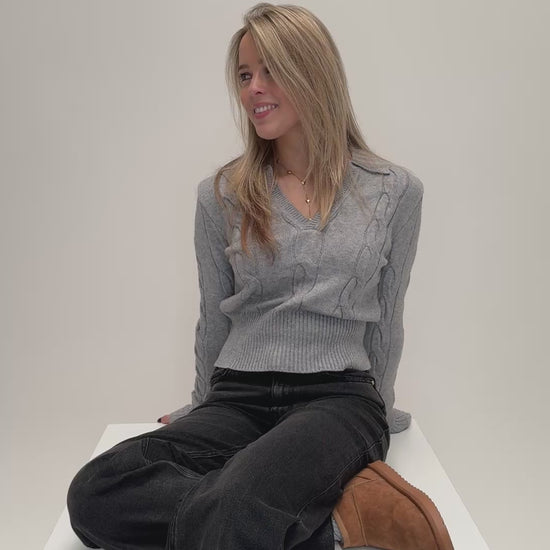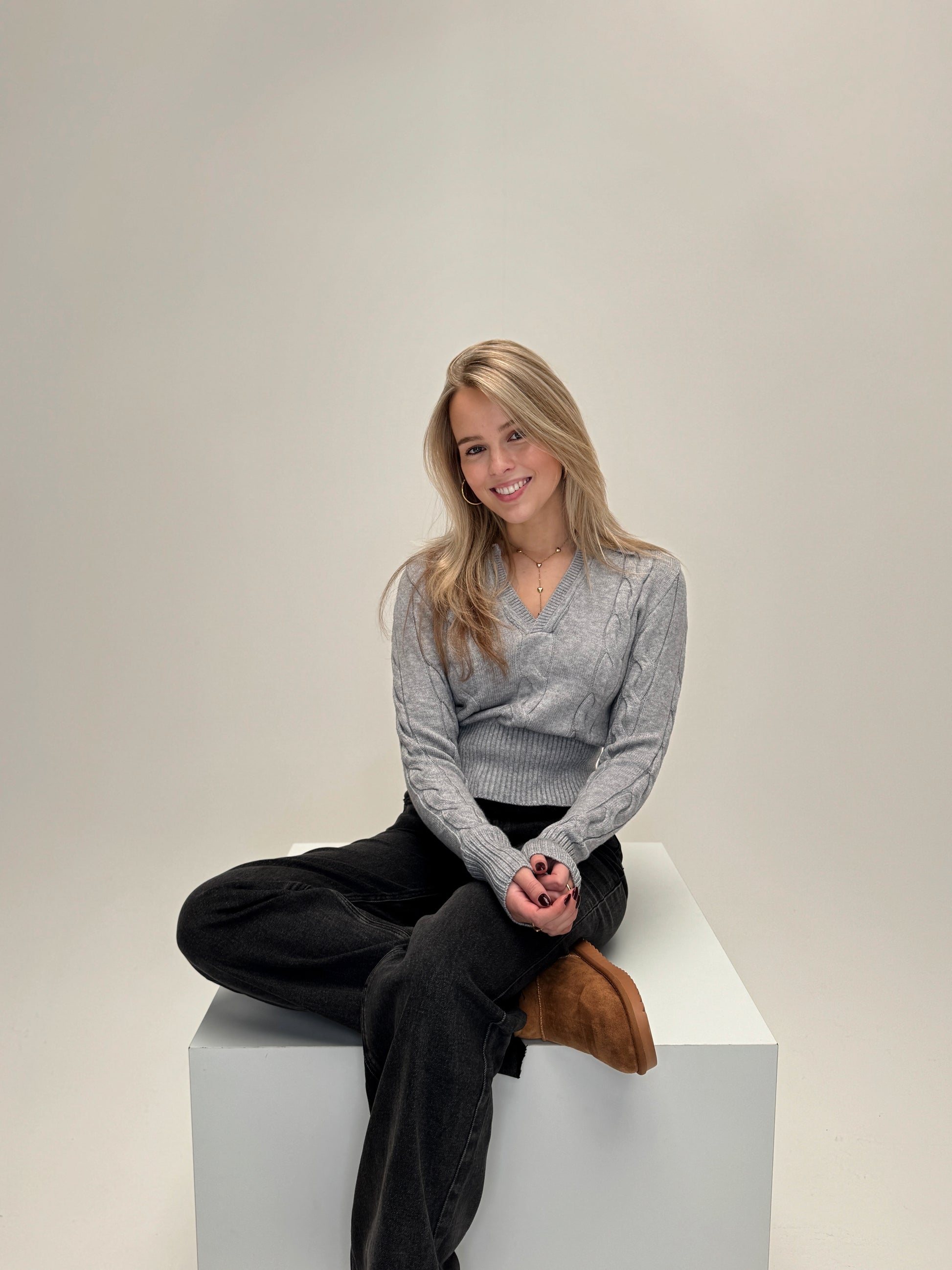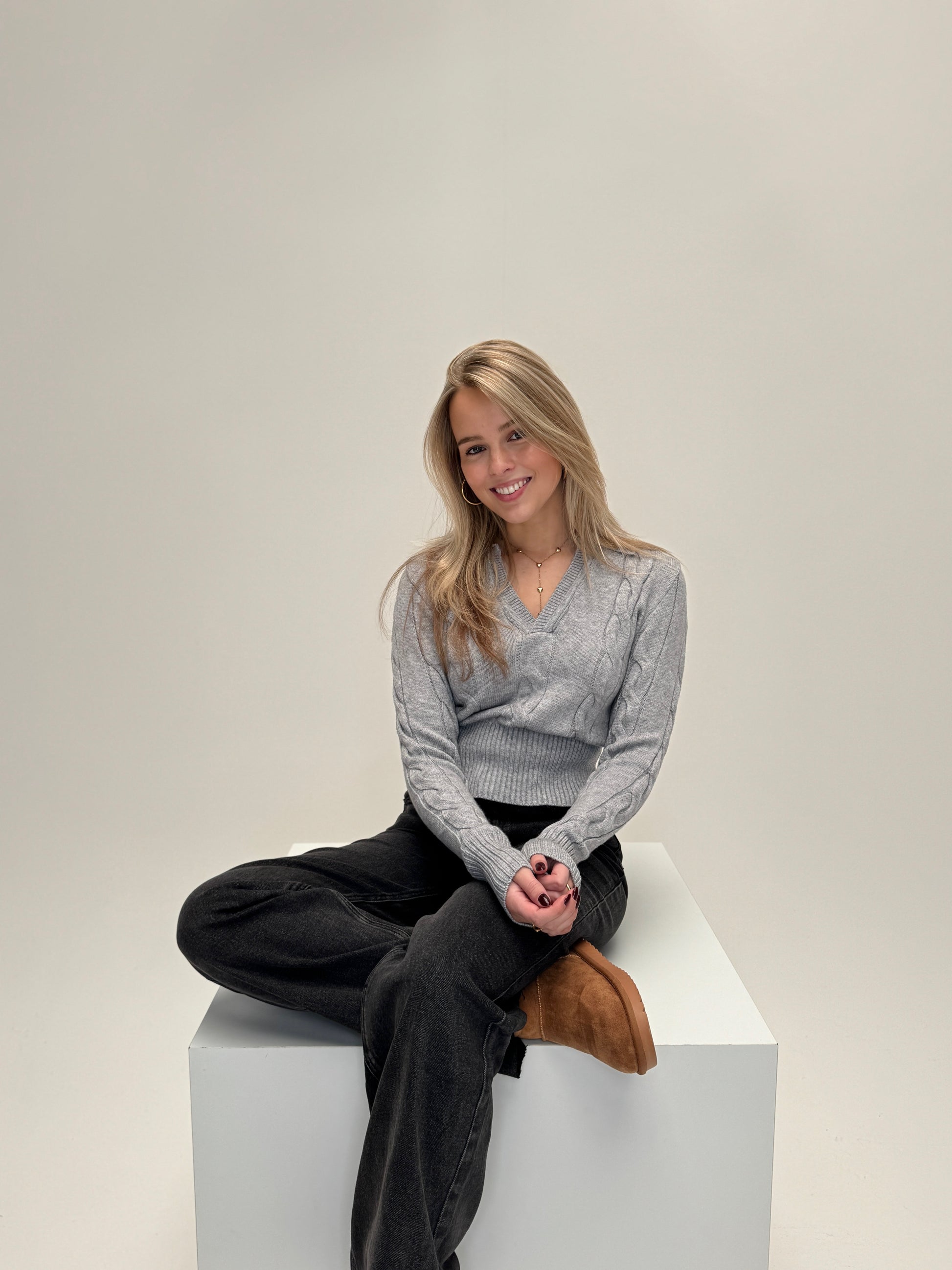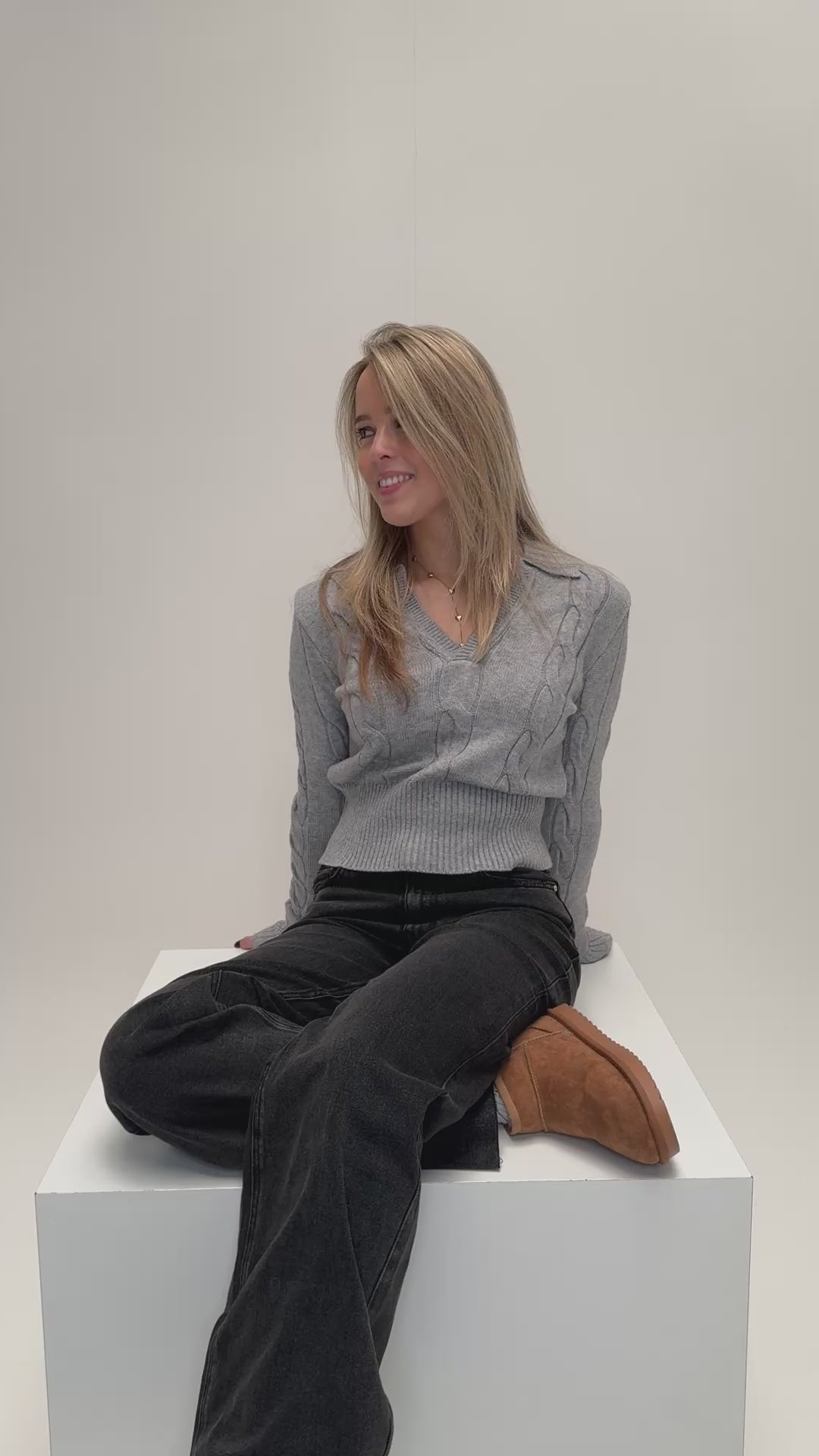 Wauw! Hoe mooi is deze nieuwe trui?! Perfect voor het herfst seizoen! De trui bevat een elegante V-hals met een kraagje en heeft een mooie aansluitende fit.