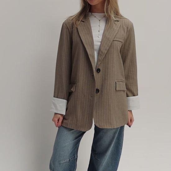 Ga voor een effortless chic look met deze oversized blazer! De relaxte fit en subtiele krijtstreep geven de blazer de perfecte mix tussen casual en classy! Combineer de blazer met je favoriete jeans voor een laid-back look of go all out met een pantalon en hakken!