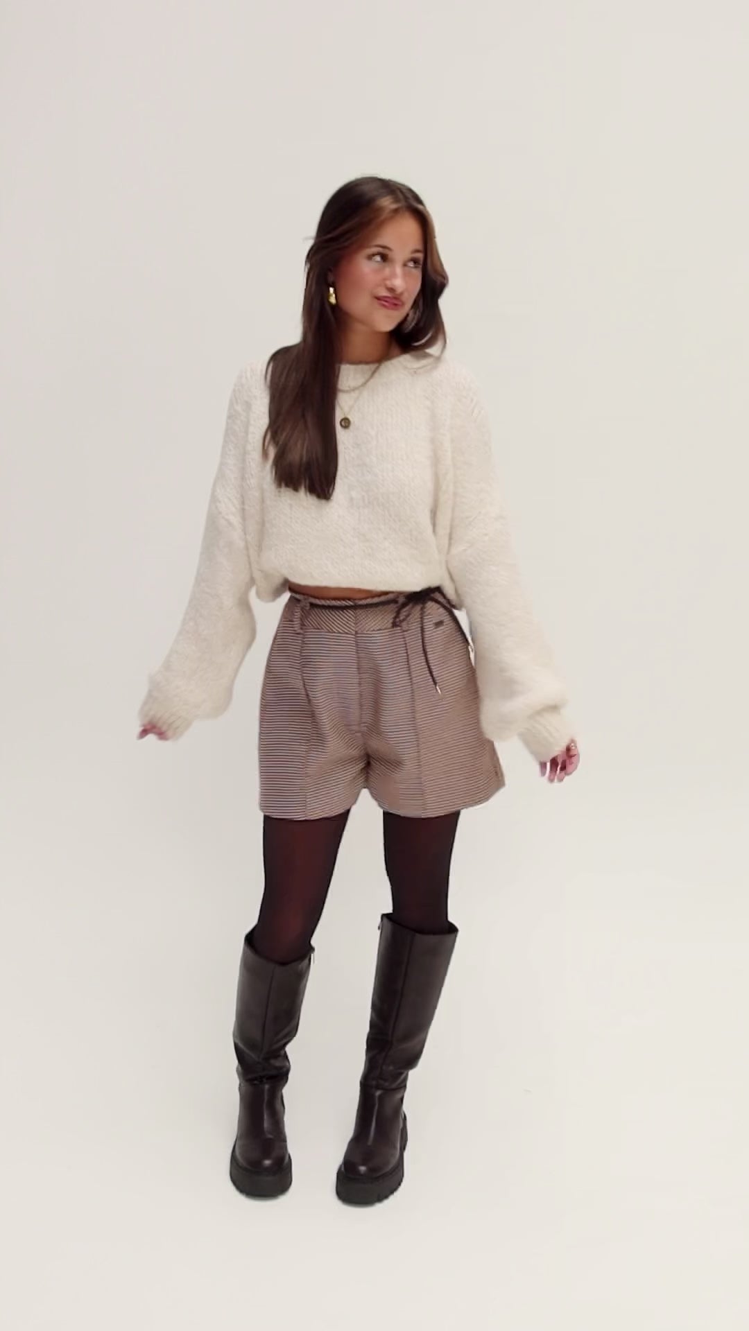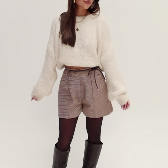 Where classy meets comfort! Dit 'statement' shortje heeft een geruite print met bruintinten! Het stofje valt soepel en is hierdoor erg comfortabel te dragen. Het shortje heeft een highwaist fit! Mega leuk te combineren met een oversized knit, of met de bijpassende 'statement' blazer!