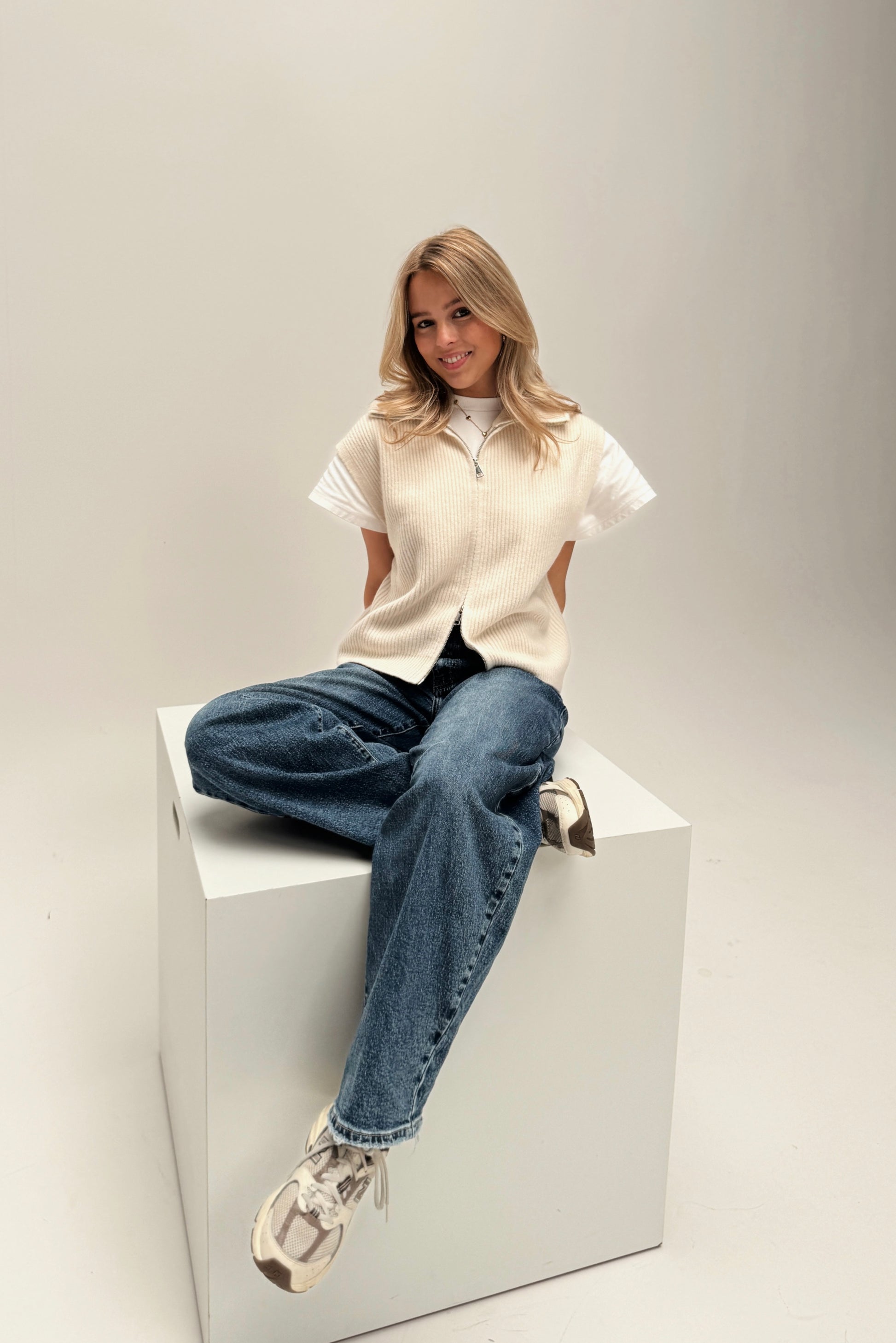 We are obsessed with our new zip knit! Het vest heeft een mega zachte stof en heeft een rits aan de voorkant! De kraag maakt het vestje helemaal af! Je kunt deze open & dicht dragen, met bijv. een wit t-shirt eronder! Go get your fave!